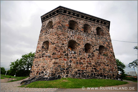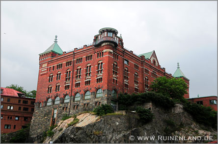 Vom Hafen stiegen wir zur 1366 erstmals urkundlich erwähnten Festung Älvsborg hinauf. War ich fälschlicherweise bislang der Meinung, dass das große Gebäude aus roten Backsteinen auf dem Berg die Festung sei, so entpuppte sich dieses als neuzeitliches Industrieobjekt. Die meisten noch vorhandenen Ruinenreste der eigentlichen Befestigung lagen hinter diesem Bau.