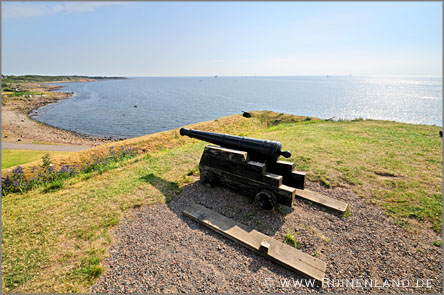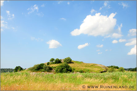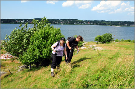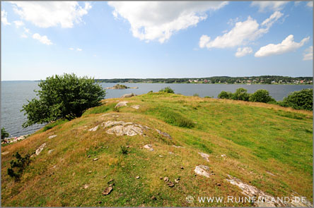 Als nächstes legten wir einen Stopp an der einstigen Burgstelle von Hunehals (Hanhals) ein. Erbaut wurde die Grafenburg im 13. Jahrhundert, doch schon 1383 wurde sie verlassen und anschließend vollständig abgetragen. Heute finden sich auf dem Burgberg keine oberirdischen Mauerreste mehr. Unterhalb der Burgstelle saßen dutzende Menschen auf den Felsen, ein angenehmer Wind wehte vom Meer hinauf und Kinder schwammen im Wasser. Am liebsten wäre ich ebenfalls ins kühle Nass gesprungen.