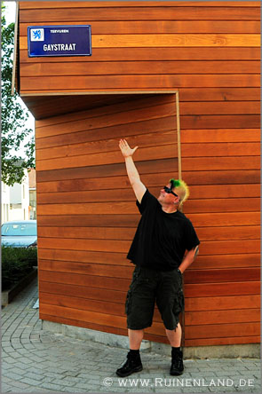 Nach einem Fotostopp in der "Gaystraat", deren Namen ich witzig fand, waren es nur noch wenige Minuten zum "Institut Jaspar". Das Kinderheim in privater Trägerschaft wurde 1921 gegründet, 1986 beendete die Jugendvorsorge jedoch die dortige Unterbringung von Kindern. Leider konnten wir nur das kleine Seitengebäude betreten, da Fenster und Türen des Haupthauses allesamt mit Brettern vernagelt waren. Und da uns Anwohner bereits argwöhnisch beäugten, verzichteten wir auf die rückseitige Suche nach einer Zugangsmöglichkeit.