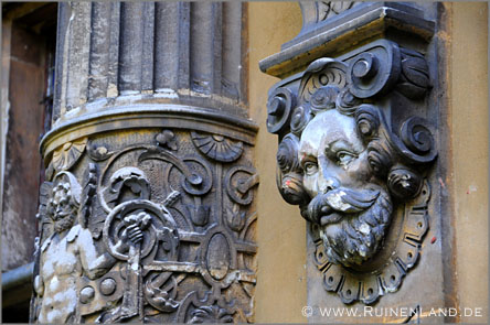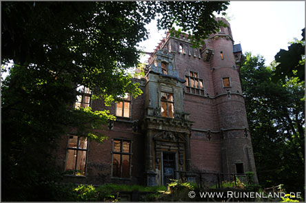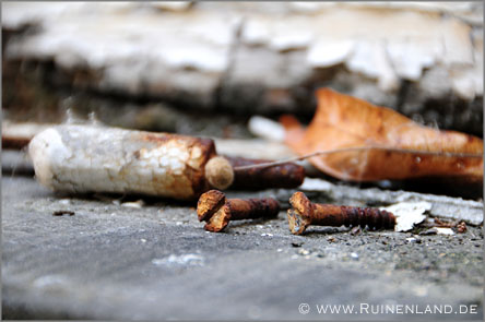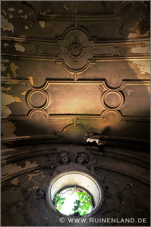 Für die vorherige "Pleite" wurde ich als Ruinenliebhaber jedoch beim Chateau Charles Albert entschädigt. Einfacher Zugang und weitestgehend vor neugierigen Blicken geschützt, war das 1869-87 erbaute Schloss zwar in einem überaus schlechten und teils einsturzgefährdeten Zustand, bot mit Steinfiguren, Kacheln, orange-blauen Kaminfliesen und Resten von Stuckdecken mit Engelsfiguren jedoch noch eine Vielzahl schöner Details.