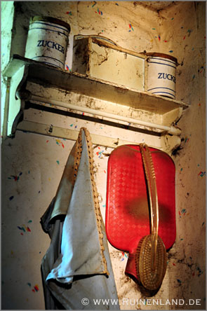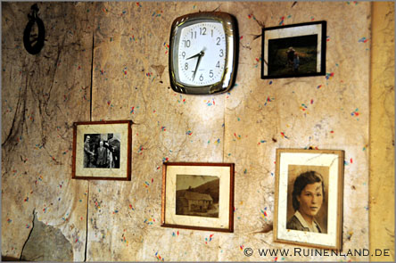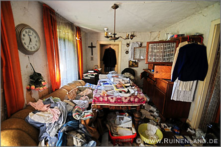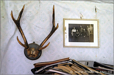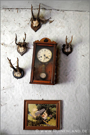 Kurze Zeit nachdem die Schwester des Besitzers verstarb, wurde dieser in ein Pflegeheim eingeliefert. Im Haus wurde im Laufe der Jahre zwar einiges durchwühlt, aber es machte nicht den Anschein, als hätte der einstige Bewohner sonderlich viele seiner Habseligkeiten mitgenommen. Bilder und Geweihe hingen an den Wänden, Bücher und Unterlagen in den Schränken, Geschirr und Lebensmittel in der Küche. Unmöglich, all die Gegenstände und Details aufzuzählen, die sich hier noch fanden. Selbst eine der Uhren lief nach all den Jahren noch. Auch über die Geschichte des Hauses und seiner einstigen Bewohner war noch viel zu lesen und zu erfahren, wenngleich ich hiervon selbstverständlich nichts veröffentliche und die Lage keinesfalls weitergebe.