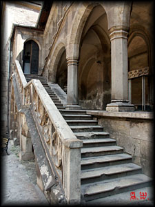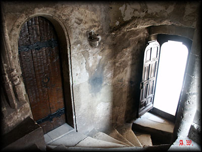 Nachdem ich noch den (leeren) Steinsarg in der Kapelle fotografiert und alle zugänglichen Treppen bestiegen hatte (*schwitz*), gingen wir zurück zum Ausgang, wo ich mir Postkarten und ein Büchlein über die (angeblich) wahre Geschichte des Vlad Tepes in Englisch kaufte. Allerdings enthielt auch diese Broschüre, wie so viele andere, einiges an Unwahrheiten und war eindeutig auf die Erwartung der Touristen zugeschnitten.