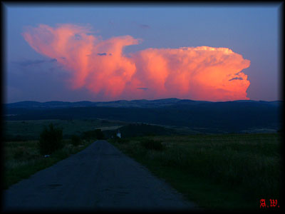 Wir fuhren weiter über Sebes (dt. Mühlbach), wo ich unseren inzwischen fast leeren Tank auffüllte und machten anschließend noch Halt bei den Grefenburgen in Câlnic (dt. Kelling) und Gârbova (dt. Urwegen). Auf dem Weg dorthin konnten wir zudem einen schönen Sonnenuntergang erleben, der eine mächtige Wolke in eine intensive Farbenpracht eintauchte.