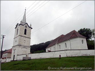 Im Anschluss an einen kurzen Fotostopp beim kleinen ehemaligen Schloss in Haghigh, welches noch heute bewohnt ist, bog ich dort rechts nach Feldioara (Marienburg) ab. Die Randbezirke mit ihren Wohnblocks sind nicht gerade schön, entstanden jedoch einst aufgrund der dortigen Minen und Industrie. Im alten Ortskern finden sich heute dagegen gleich drei Wehrbauten: Die Kirchenburg, die Ruinenreste der Marienburg im Ort sowie die wenig außerhalb liegende Ruine der so genannten "Ur-Marienburg" (einst lediglich das Vorwerk zur eigentlichen Marienburg, von welcher heute allerdings kaum mehr etwas steht und deren Mauerreste zudem meist in Privatgrundstücke eingebunden sind). Von der Kirchenburg aus führt ein Fahrweg bis unter die sehenswerte Ruine der "Ur-Marienburg", bei gutem Wetter auch ein schöner Platz für ein Picknick. Mehrere Mauerreste auf beiden Seiten, ein Turmrest, Durchgänge und die Ruinen der einstigen Toranlage sind noch zu sehen. Zudem blickt man vom Burgberg genau auf die Kirchenburg von Feldioara und auf die Mauerreste der Marienburg.