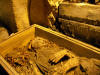 Ein Blick in die teilweise geöffneten Särge in der Michaelergruft eröffnete nicht immer nur die darin erwarteten Skelette - einige der in der Gruft bestatteten Leichen trockneten zu Mumien, die fast wie friedlich schlafend auf mich wirkten. Die Verstorbenen wurden auf Holzspänen gelagert, welche Flüssigkeit aufsaugten. Der ständige Luftzug über die seitlichen Lüftungsschächte trug darüber hinaus ebenfalls maßgeblich zur Mumifizierung bei. Ein Teil der Mumien ist so gut erhalten, dass man neben Grabbeigaben (meist Rosenkränze und Kreuze) noch Details der Seidenkleidung, Schnallenschuhe, Gürtel und gar Perücken sehen kann, selbst ein Rüschenkleid und umgeklappte Handschuhe (ähnlich heutigen Armstulpen). Diese Funde sind historisch insbesondere deshalb sehr wertvoll, da sich allgemein kaum weltliche originale Kleidung von Adligen aus dem 18. Jahrhundert erhalten hat.