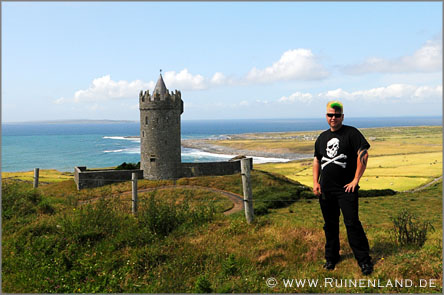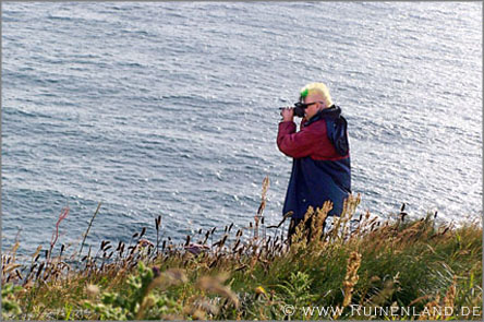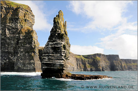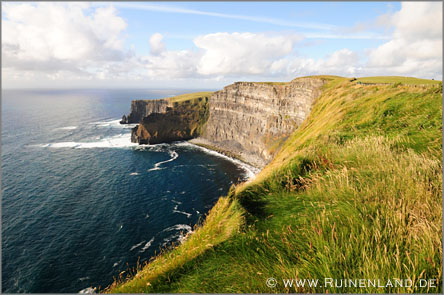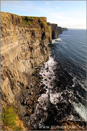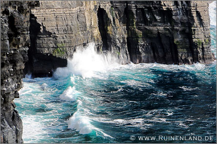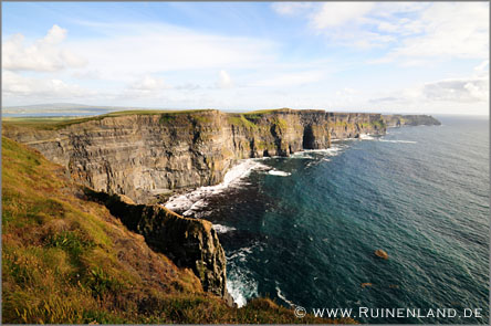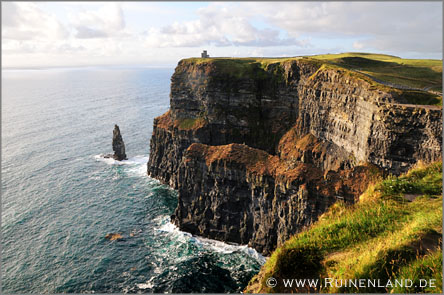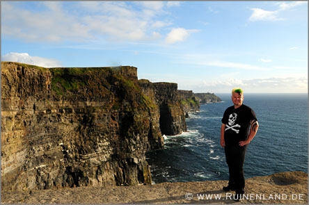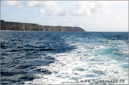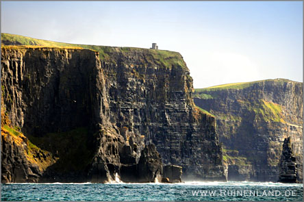 Vorbei am Doolin Castle ging es nun auf die Cliffs of Moher. Auf der Klippe nahe Hag’s Head an der Westküste des County Clare stand einst ein Steinfort, genannt Moher O’Ruan ("Ruan’s zerfallenes Fort"). Diese Landmarke gab den Klippen ihren Namen. Die acht Km langen und bis zu 214 m hohen Cliffs of Moher ist die bekannteste Steilküste Irlands, in ihrer Mitte steht der O'Brians Tower, ein Wach- und Aussichtsturm von 1835. 2008 wurden hier zudem Szenen für den Film "Harry Potter und der Halbblutprinz" gedreht.