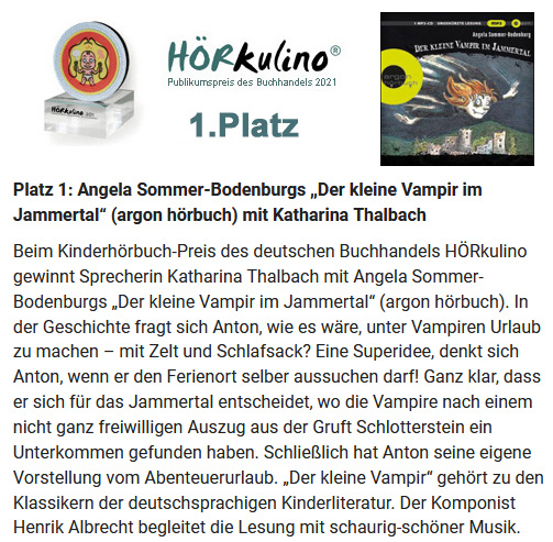 Das hole ich nun nach, u.a. mit mehreren interessanten und erfreulichen Neuigkeiten rund um den kleinen Vampir und dessen Autorin Angela Sommer-Bodenburg. :)