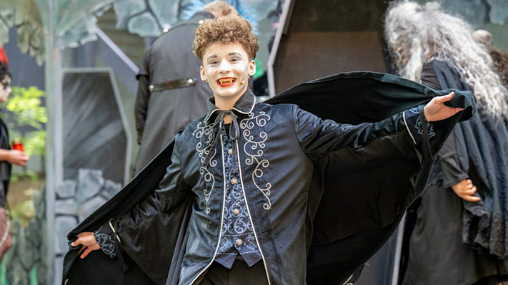 Noch bis zum 09. August 2025 wird auf der Freilichtbühne Lohne (Oldenburg) „Der kleine Vampir“ aufgeführt.
