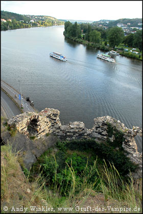 Ich durchquerte die Festung, als ich auf der anderen Seite die Ruine eines ehemaligen Wachturms aus dem 15. Jahrhundert entdeckte. Eine Legende berichtet, dies sei das Bad der Libuse gewesen, die in Sagen für den Anfang der böhmischen Geschichte steht. Allerdings war die Ruine regulär nicht zu erreichen, so dass ich kurzerhand über die Absperrung kletterte, um auch von nahem Fotos machen zu können. Aufgrund des steilen Felshangs nicht unbedingt die klügste Entscheidung, wie ich mir schließlich selbst eingestehen musste.