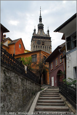Wir fuhren Richtung Norden und hielten für einen einstündigen Zwischenstopp in Sighisoara (Schässburg). Ich war schon ein paar Mal dort, aber da wir eh daran vorbei kamen, sollte es Alex wenigstens mal gesehen haben. Wir machten ein paar Bilder, ich kaufte mir noch ein T-Shirt (nur mit einer Fledermaus drauf; das einzige, welches man meiner Meinung nach von den meist furchtbar kitschigen Dracula-Motiven überhaupt tragen kann) und fuhren weiter.