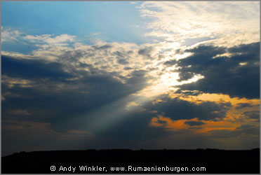 In Sangeorgiu de Padure hielten wir noch Ausschau nach einem Prinzengrab, von dem mir Sara erzählt hatte, wurden jedoch nicht fündig. Aufgrund der mehrstündigen Rückfahrt, die noch vor uns lag, ließen wir die weiteren ursprünglich eingeplanten Besichtigungspunke aus und gingen nur noch etwas essen. Bei Turda tauschten wir den Ersatzreifen wieder gegen das geflickte Rad aus, ließen den Wagen waschen, tankten voll und fuhren dem Sonnenuntergang entgegen zurück nach Cluj.