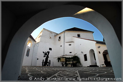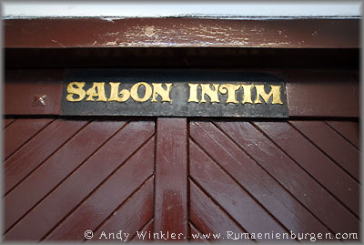 Nach Fotostopps an der ehemaligen Kirchenburg von Halchiu, dem Zeidener Berg (auf dem sich, oberhalb von Codlea, die geringen Reste der Cetatea Neagra / Schwarzburg befinden) und einer verlassenen Kaserne, fuhren wir gemeinsam nach Brasov (Kronstadt). Der Abend war noch früh genug, so dass wir weitere Besichtigungspunkte ins Auge fassten, zu denen uns Ralf noch begleitete. Die Festung "Cetatuia Brasov" hatte entgegen meiner Erwartung noch geöffnet und entpuppte sich als touristisches Ausflugsziel mit Restaurant, wo sich eine rumänische Mittelalter-/Rollenspiel-Gruppe versammelt hatte. Mir sollte es recht sein, Hauptsache, die Burg war noch zugänglich und ich konnte sie auch von innen sehen. Wenngleich mir die unrenovierten Außenmauern eher zusagten, als die weiß getünchten Wände der inneren Gebäude. Das Schild "Salon Intim" auf einer kleinen Tür brachte mich hingegen zum Schmunzeln ;-)