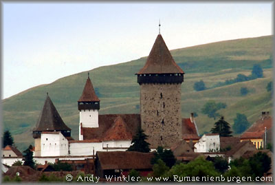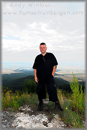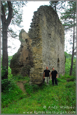 Nun war es höchste Zeit; um 13.00 Uhr hatten wir in Crizbav (Krebsbach) eine Verabredung mit Ralf Sudrigan aus Brasov (Kronstadt), den ich kurz zuvor übers Internet kennen lernte und der uns zur Ruine der Cetatea Crizbav (Heldenburg) führen sollte. Auf der kurvigen Strecke fuhren jedoch so viele LKWs, dass wir nur langsam voran kamen und letztendlich mit 15 Minuten Verspätung in Crizbav waren. Ich rief Ralf aber zwischenzeitlich auf dem Handy an und teilte ihm mit, dass es etwas später würde.