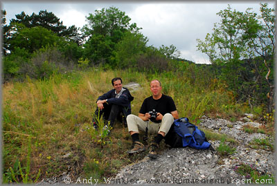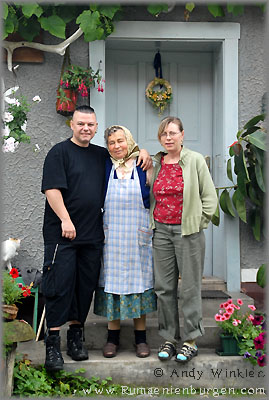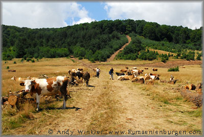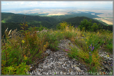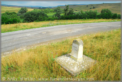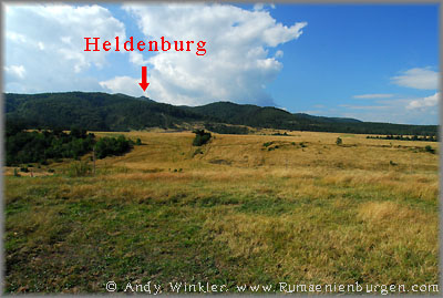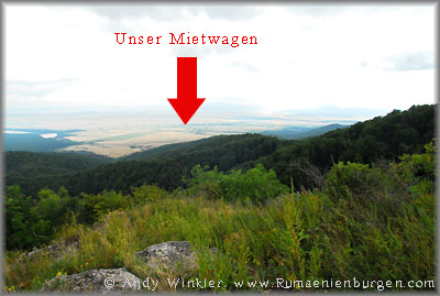 Von Crizbav fuhren wir mit dem Auto in das angrenzende Dorf Cutus; eine Zigeunersiedlung, in der jedes Haus die gleiche Hausnummer hat, nur mit einem anderen Buchstaben dahinter. Wir stellten das Auto im Hof eines Bekannten von Ralf ab (er betreibt dort, als einziger "Nicht-Zigeuner" im Ort, einen Kiosk) und liefen in Richtung Berge. Ralf zeigte uns einen Felsen, hinter dem die Ruine der Heldenburg steht. "Mmh, sooo weit scheint das gar nicht zu sein und auch nicht so schwierig zu finden", dachte ich bei mir - doch ich sollte mich gewaltig täuschen!