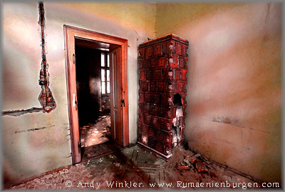 Am Dorfeingang entdeckte ich noch ein altes Gestüt aus dem Jahr 1820, deren einstige Büro- und Wohnräume heute leer stehen. Natürlich konnte ich meiner Neugierde nicht widerstehen und wagte einen Blick ins Innere. Das Dachgebälk schien bereits recht morsch zu sein, in den Innenräumen waren noch die alten Kamine mit schmuckvollen rotbraunen Fliesen zu sehen.
