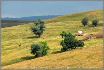 Abschied von Viscri (Deutsch-Weißkirch); links zwei von Saras Katzen, rechts ihr Haus. Unten: Landschaft außerhalb von Viscri.