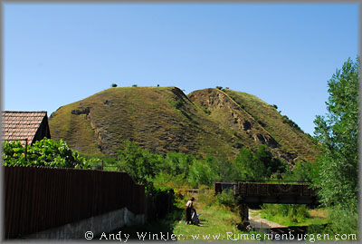 Als Ersatz wollten wir stattdessen eigentlich die Ruine auf dem Riesenberg bei Orlat (Winsberg) besuchen. Aber auch dort mussten wir feststellen, dass es keinen direkten (sowie erst Recht keinen befahrbaren Weg) gab und der Berg erst über ein Plateau hätte umrundet werden müssen, was ebenfalls wieder zu lange gedauert hätte. Also falls jemand im Sommer 2009 Lust hat, mit mir wieder weite Wege zu abgelegenen Ruinenresten in Rumänien zu laufen, kann er sich ja schon mal melden... ;-)