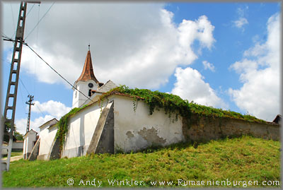 Um drei Wanderkarten und 4 GB reicher (die in der schnelleren Variante leider kaum günstiger als in Deutschland waren), war unser erstes Ziel die Kirchenburg von Codlea (Zeiden), die wie so oft bei diesen Bauten jedoch verschlossen war. Heute fuhr zur Abwechslung mal Albert, ich war zu müde und auch ganz froh, es mir mal auf dem Beifahrersitz bequem machen zu können. Die ursprünglich im Anschluss eingeplante Burgruine der Cetatea Neagra (Schwarzburg) bei Codlea hatte ich indes aus dem Programm gestrichen, sie hätten wir zeitlich nicht geschafft, da wir erst so spät aus Brasov weggekommen waren. Stattdessen legten wir noch einen Stopp bei der Kirchenburg von Halmeag (Halmagen) ein. Diese wurde uns vorab empfohlen; als ich davor stand, fragte ich mich allerdings, warum...