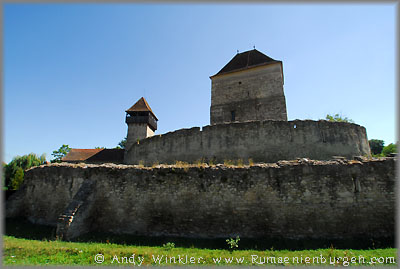 Albert stieg für Fotos an der Bauernburg im Ort aus, ich brachte in der Zwischenzeit Andreas und Meinolf zurück zu ihrem Haus. Auf dem weiteren Weg hielt ich für Albert noch an der Grefenburg von Calnic (Kelling). Während er seine Fotos machte, kam eine bettelnde Zigeunerfamilie ans Auto, so dass ich wieder einstieg und die Türen verschloss.