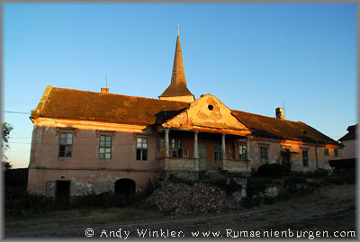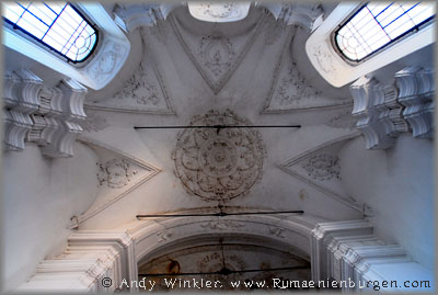 Von nun an fuhren wir im Wettlauf mit der untergehenden Sonne, denn wir wollten an unserem vorletzten Tag noch so viel wie möglich sehen. Die Kirchenburg von Cricau (Krakau) war dem entsprechend eigentlich nur als Fotostopp eingeplant, direkt daneben stand jedoch das restaurierte Adelshaus Conacul San Benedictus, in welchem auch übernachtet werden kann. Die nette Dame lud uns sogleich in das Haus zur Besichtigung ein, zeigte uns das museal eingerichtete Erdgeschoss und gestattete uns gerne zu fotografieren. So wurde der hiesige Aufenthalt zwar länger, als geplant, aber das war auch O.K.