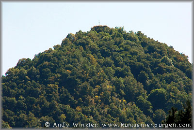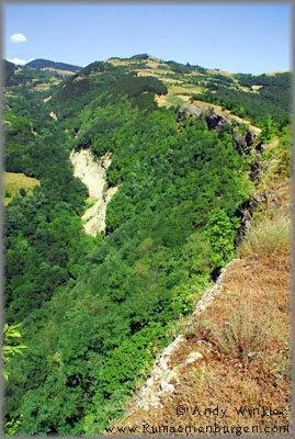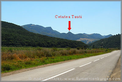 Ausblick von der Burgruine Tauti (rechts die Stelle einer einstigen Daker- oder Römersiedlung auf dem gegenüberliegenden Berg)