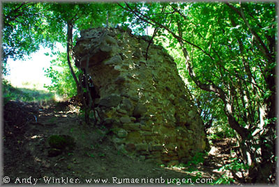 Da wir am Morgen früh aufgebrochen waren, hatten wir nun genügend Zeit zur Verfügung, um auch die Ruine der Cetatea Zebernicului (Burg Zebernik) bei Valea (Vintului Wintzbach) zu besuchen. Nachdem wir die richtige Straße gefunden und schnatternde Gänse hinter uns gelassen hatten, parkte ich neben einem Kiosk am Dorfrand.