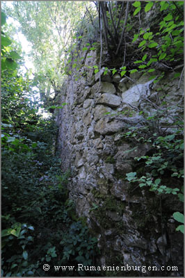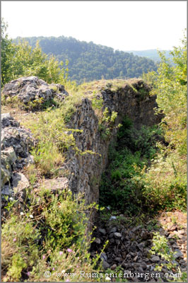 Mittlerweile war das Thermometer auf fast 40°C angestiegen und ich begrüßte die Klimaanlage in unserem Mietwagen. In Jdioara führte ein Trampelpfad zur dortigen Ruine, der - wenn auch sehr lückenhaft - mit Wanderwegzeichen markiert war. Ohne diese Hinweise hätten wir die Judenburg (so ihr deutscher Name, dessen Ursprung nicht zweifelsfrei geklärt ist) aber wahrscheinlich gar nicht oder erst nach einiger Suche gefunden.