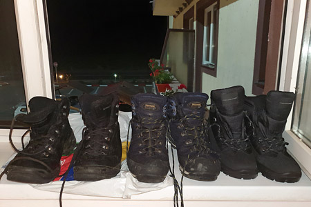 Wir waren völlig müde, hängten nur noch unsere nassen Klamotten auf, stellten unsere Schuhe ans Fenster und fielen ins Bett.