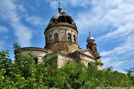 Auf dem Tourplan standen ursprünglich noch vier weitere Ziele. Uns war jedoch bewusst, dass wir diese zeitlich nicht mehr alle schaffen würden, sodass wir uns für das Conacul Gudenus in dem abgeschiedenen Dörfchen Gad entschieden, das ohne allzu große Umwege auf dem Rückweg Richtung Hotel lag. Die "Straße" dorthin unterzog mein Auto allerdings einer ziemlichen Prüfung... Der erste Weg, den mein Navi anpeilte, erwies sich als definitiv unbefahrbar, weshalb ich umkehrte und eine andere Straße versuchte. Auch hierbei handelte es sich um einen unbefestigten Feldweg, auf dessen tiefen Spurrillen und Schlaglöchern wir während der 9 km trotz Schritttempo ziemlich durchgeschüttelt wurden und wiederholt aufsetzten. Ich wusste nicht einmal, was uns vor Ort erwarten würde - im Internet hatte ich lediglich ältere Fotos des vormaligen Herrenhauses gefunden (erbaut im Barockstil, aus dem frühen 19. Jahrhundert, zuletzt als Dorfschule genutzt). Entsprechend groß war unsere Enttäuschung, dass von dem Anwesen (das auf den alten Aufnahmen zwar schon Ruine war, aber mit Säulenbögen und Stuckrosetten noch vergleichsweise gut aussah) nur noch verwilderte Ruinenreste existierten. Der Giebel und das obere Stockwerk waren längst eingestürzt und die Mauern inzwischen so eingewachsen, dass von der einstigen Schmuckseite gar nichts mehr erkennbar war; geschweige denn, dass man das Anwesen bei diesem Bewuchs noch hätte betreten können. Nun gut, letztendlich ein weiteres historisches Gebäude, dass ich auf meiner Karte als "besucht" markieren konnte. Und immerhin freuten sich die von mir gefütterten Straßenhunde im Dorf.
