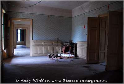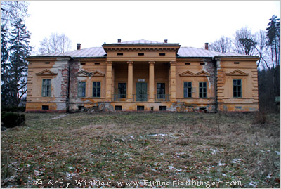 In Ilia (Elienmarkt) machte ich einen kurzen Fotostopp an zwei leer stehenden Kirchen und besichtigte anschließend das Geburtshaus des Fürsten Gabor Bethlen sowie das daneben stehende, verlassene Schloss Bornemissza. Leider waren beide verschlossen. Beim Umrunden der Gebäude krachte ich mit dem Fuß in ein tiefes Eisloch, zum Glück befand sich unter der Eisschicht aber ein Hohlraum und kein Wasser.