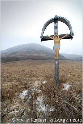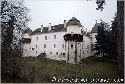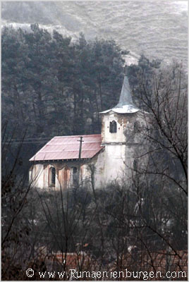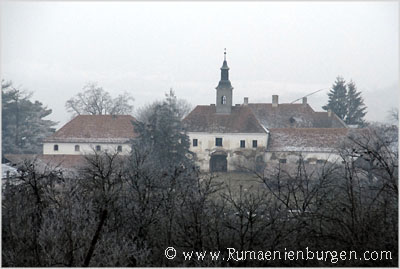Um 9.00 Uhr klingelte mein Wecker, aber ich war viel zu müde und stellte ihn noch zweimal weiter, so dass ich schließlich doch erst um 11.00 Uhr losfuhr. Kaum war ich aus der Stadt draußen und auf der stellenweise vereisten -16- Richtung Reghin, begleitete mich eine Nebelwand nach der anderen. Überhaupt war alles grau in grau; nicht gerade das Wetter, welches ich mir erhofft hatte. Aber es ließ sich ja nicht ändern, also wollte ich das Beste daraus machen. Überwiegend visierte ich heute Schlösser an, denn im Winter alleine auf irgendwelche Burgruinen zu klettern, hatte ich keine Lust.