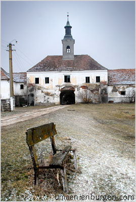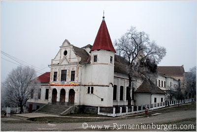 Für eine Besichtigung der weiteren, bereits genannten Schlösser der Familie Teleki war es inzwischen zu spät, das letzte Tageslicht wollte ich aber noch nutzen. Vorbei am schlossähnlichen "Caminul Cultural" (Kulturzentrum) in Dedrat (Deutsch-Zepling) fuhr ich zum Feudalschloss Kemeny in Brancovenesti (Wetsch), welches auf eine Burg aus dem Jahr 1241 zurück geht, in den folgenden Jahrhunderten (insbesondere 1557) unter mehrfachem Besitzerwechsel jedoch wiederholt umgebaut wurde. Im Inneren befindet sich heute eine Psychiatrische Klinik, trotz des wenigen Lichts konnte ich dank Stativ und längerer Belichtung noch brauchbare Außenaufnahmen machen (in Wirklichkeit war es bereits bedeutend dunkler, als auf dem Foto ersichtlich ist).
