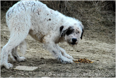 Während meiner Fahrt Richtung Teaca (Tekendorf) begegneten mir mehrmals Straßenhunde. Heute hatte ich jedoch Hundefutter dabei, welches ich mir am Vorabend von Miri & Attila hatte geben lassen und worüber sich die hungrigen Tiere sichtlich freuten.