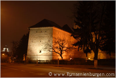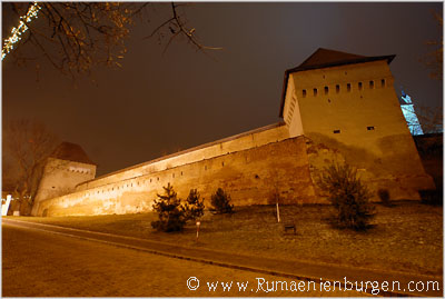Mittlerweile war es fast dunkel, ich fuhr aber trotzdem noch die rund 45 Km nach Targu Mures (Neumarkt am Mieresch), in der Hoffnung, dass die dortige Stadtfeste  beleuchtet sein würde. Und ich hatte Glück. Nur die Temperaturen waren inzwischen derart gesunken, dass ich trotz mehrerer Kleidungsschichten bibbernd um die Stadtmauer herum lief, um sie von allen Seiten abzulichten. Auch das große Tor stand offen, so dass ich ebenso von der Innenseite noch Bilder machen konnte.