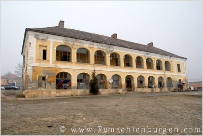 Mein erstes Ziel war das Castelul Rakoczi in Urmenis. Von der ersten Ansicht hätte ich geschworen, es stünde leer - insbesondere aufgrund der zum Teil zerbrochenen und bestenfalls notdürftig vernagelten Fenster. Um so mehr erstaunte mich die Rückseite: Auf der Leine im Palisadengang hing Wäsche und an der Wand waren zwei Satellitenantennen befestigt. Keine Fenster, aber Sat-TV; unglaublich...