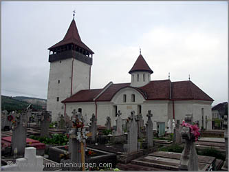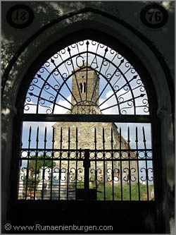 Nach dem Fotografieren eines großzügig beladenen Heuwagens ging es über holprige Sträßchen nach Garbova (Urwegen). Zuerst machten wir einen Fotostopp an der verschlossenen Kirchenburg und stiegen anschließend zur Kirchenruine am Friedhof hoch. Zu unserer Enttäuschung war das Friedhofstor verschlossen, so dass wir die Ruine lediglich durch das Gitter sowie deren Turm über die Mauer fotografieren konnten.