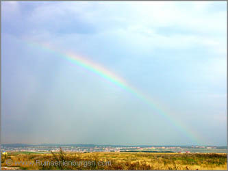 Auf der Straße nach Sibiu (Hermannstadt) tat sich vor uns ein Regenborgen auf. In Sibiu selbst erwarteten uns in erster Linie Baustellen, viel Verkehr, unzählige LKWs und eine Irrfahrt auf Umleitungsstraßen. Ein reiner Zufall, dass wir dort auf Anhieb auf der Straße nach Cisnadioara (Michelsberg) landeten, wo wir die Ruine der einstigen Wehrkirche besichtigen wollten.