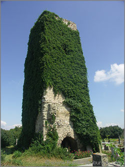 bewachsenen Turm samt Umfassungsmauern fotografiert hatten, fuhren wir einen Ort